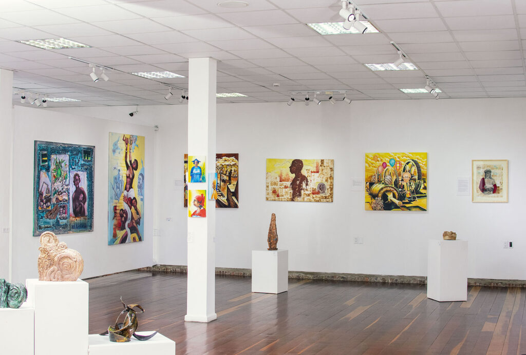 The selected artworks make reference to subjects such as slavery, colonialism and oppression, but the emphasis lies particularly on the present; on our ancestral heritage and on us coming together and working together as one nation, towards the goal of a better future for all.