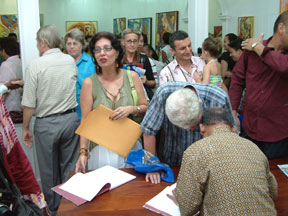 (above picture taken at the festive opening night reception when the artist was signing his book) SOEKIJune 27 – July 09, 2005 Readytex Art GalleryMaagdenstraat 44 – 48Tel.: 474380 / 421750Monday – Friday 08.00 – 16.30 hrsSaturday 08.00 – 13.00 hrs Signing sessions on exhibition days between 12.00 - 13.00 hrs. Soeki’s art is a celebration of culture. He uses bright, gay colors. A lot of red, never clashing, always festive, vivid. Dancing and singing, traditional costumes, rain forest,...